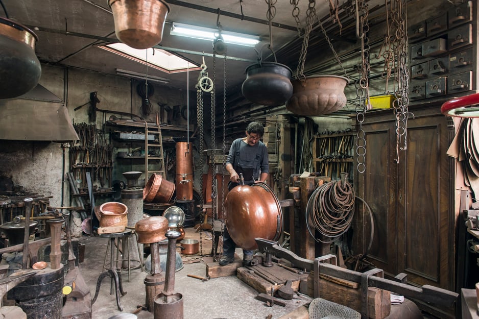 Mit abertausenden Hammerschlägen nehmen meine Kupferwaren gestalt an. Kupferkessi, Teekrüge, Pfannen, Kinderkochherde und vieles mehr.