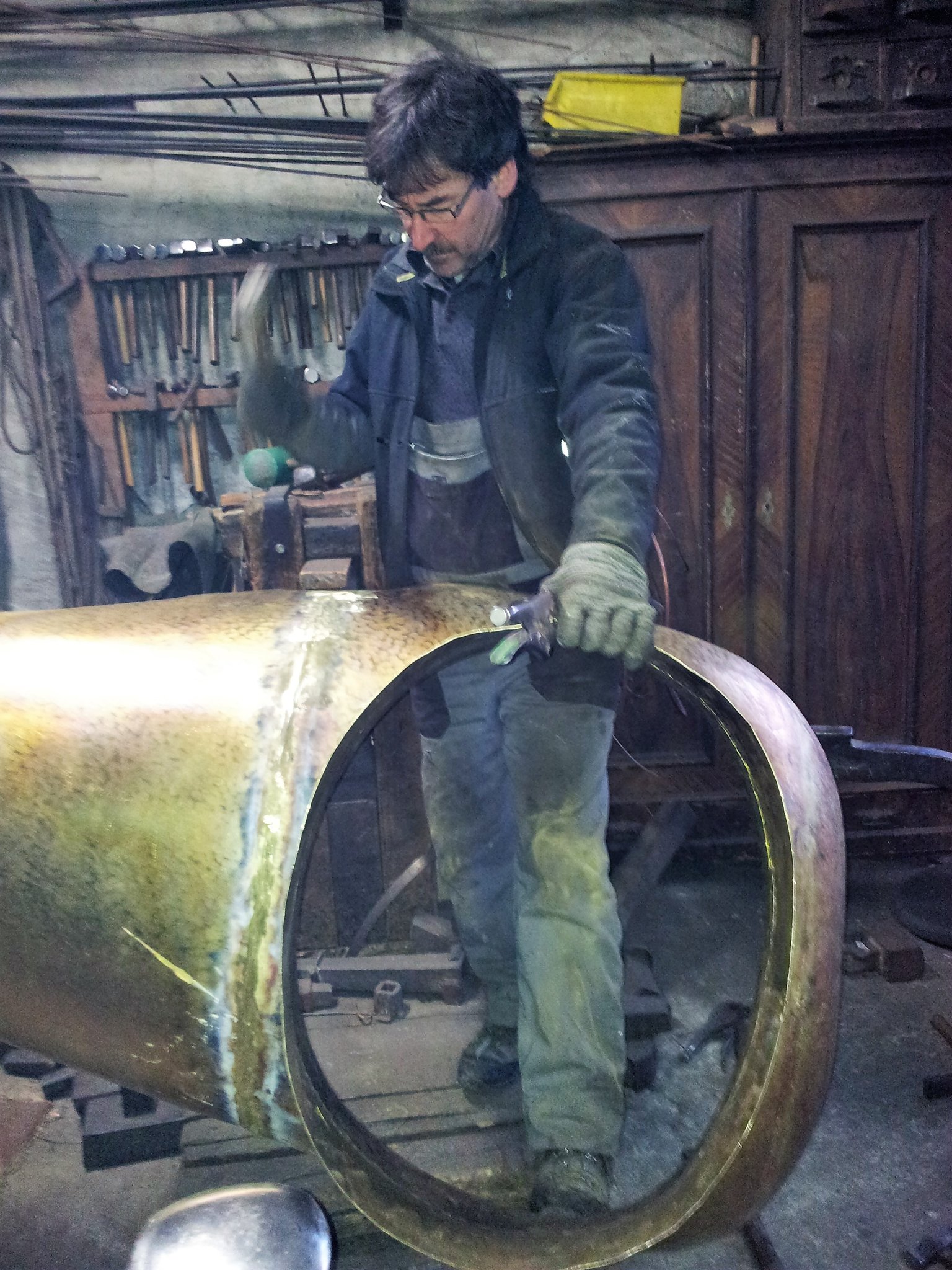 Die Pauke besteht meist aus einem fast halbkugeligen Kupferkessel, der mit einem Fell aus Kunststoff oder Tierhaut bespannt ist. Ich fertige neue Pauken an und repariere Kupferpauken. Meist in Zusammenarbeit mit dem erfahrenen Paukist Dieter Dyk.